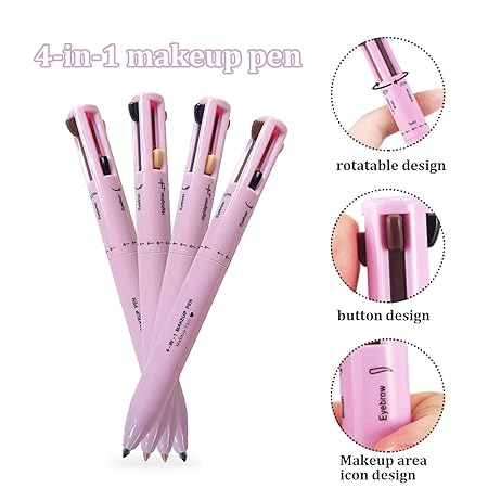 4 in 1 Make Up Pe, Multifunctional Eyebrows Eyeliner Lip Liner Highlighter Makeup Pen, Touch Up 4-in-1 Makeup Pen, Waterproof All In One Makeup Pen Eye Long Lasting (Pack of 1)